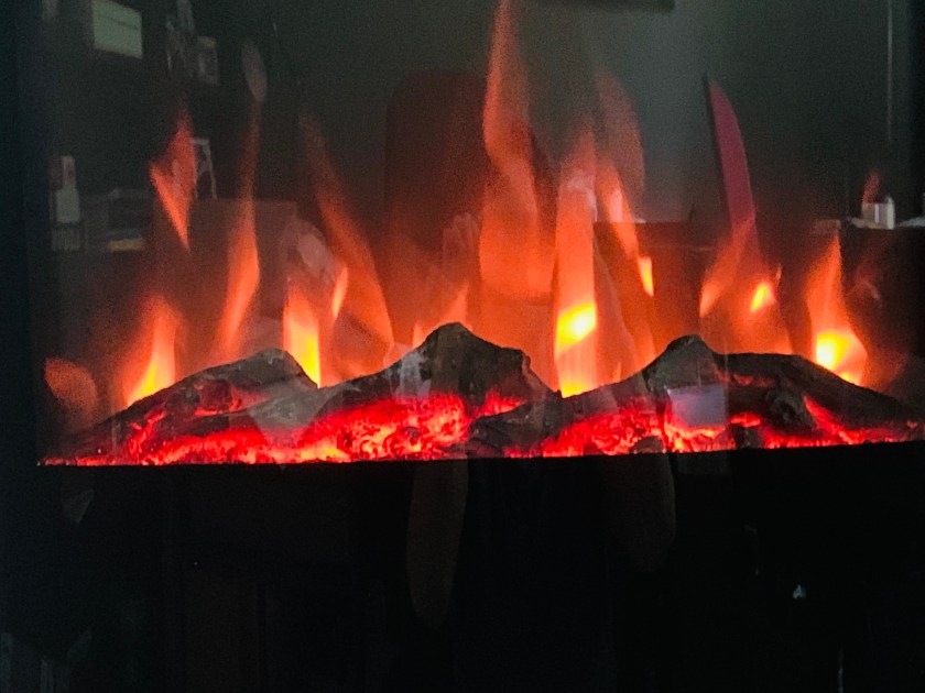 In Texas, the temperatures hit triple digits for the first time on Sunday and will continue for the next two weeks according to the weatherman. We are in the Dog Days of Summer. This is a photo of the fireplace my husband bought for my birthday for my office. It’s only 25″ and it’s a beauty, I look forward to cooler temps this winter.