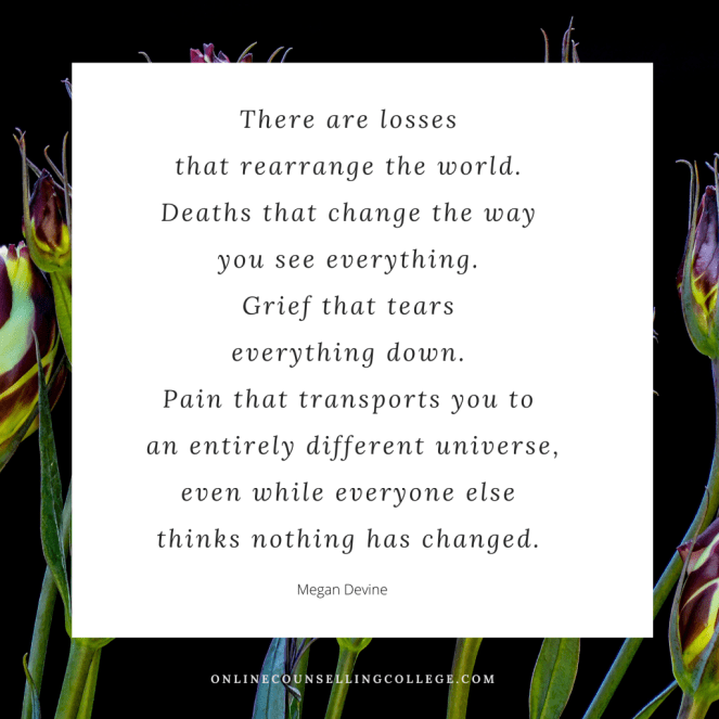 “There are losses that rearrange the world. Deaths that change the way you see everything. Grief that tears everything down. Pain that transports you to an entirely different universe, even while everyone else thinks nothing has really changed.” – Megan Devine
