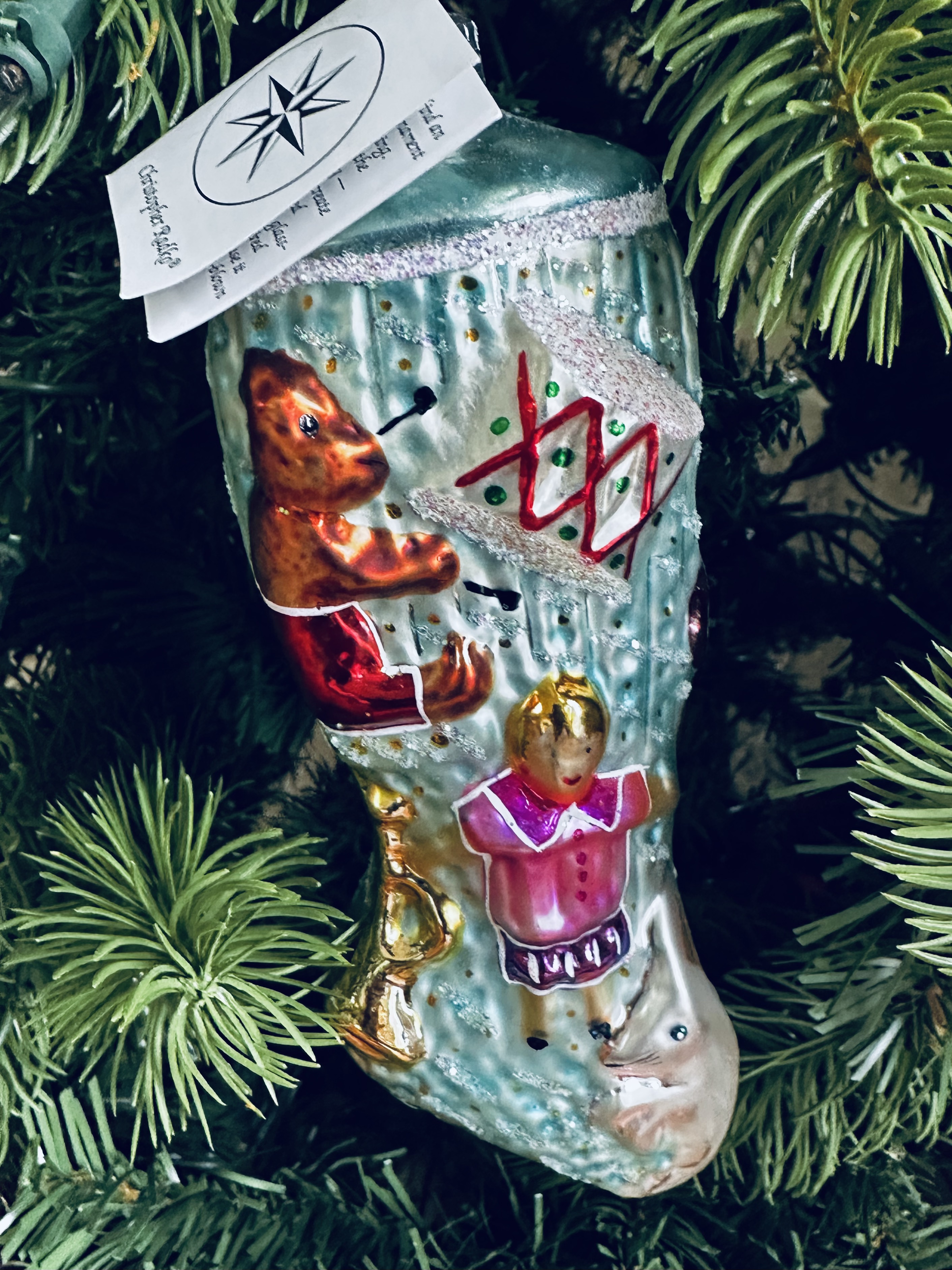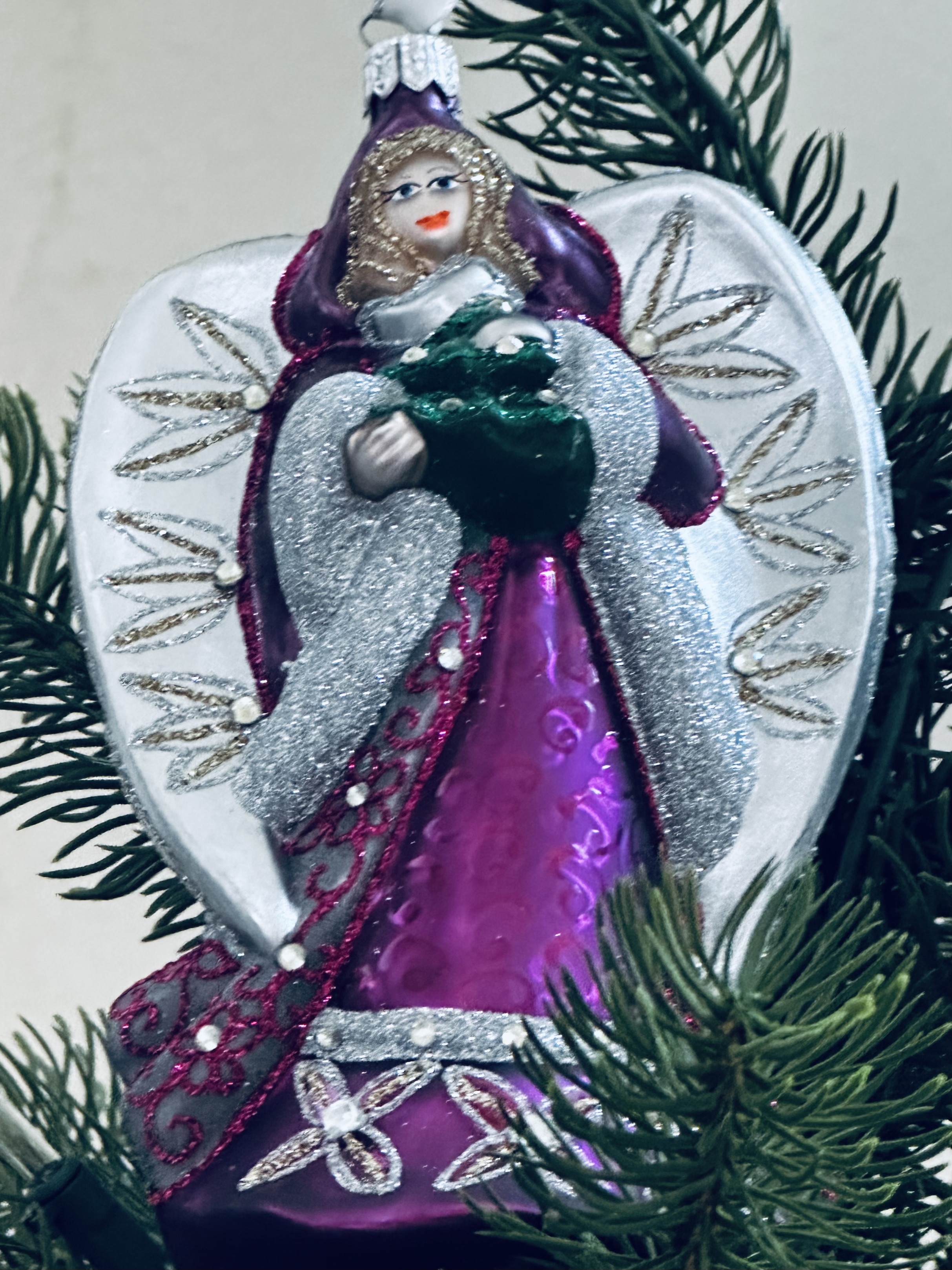 These are a few of my favorite ornaments. The Santa in the first photo is made of sterling silver and I forgot who designed it. The other ornaments are made by hand with European glass by Christopher Radko.