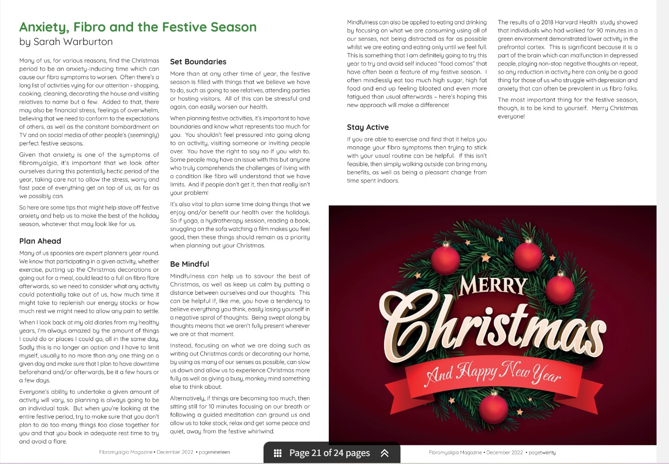 Creating art, journaling, gardening, reading a good book, even just sitting outdoors and listening to the sounds of nature can help distract from pain. Research has shown that music helps the brain release dopamine our “feel-good” hormone. The important thing is to find something that, gives you hope, brings you joy or something you are grateful for each day.